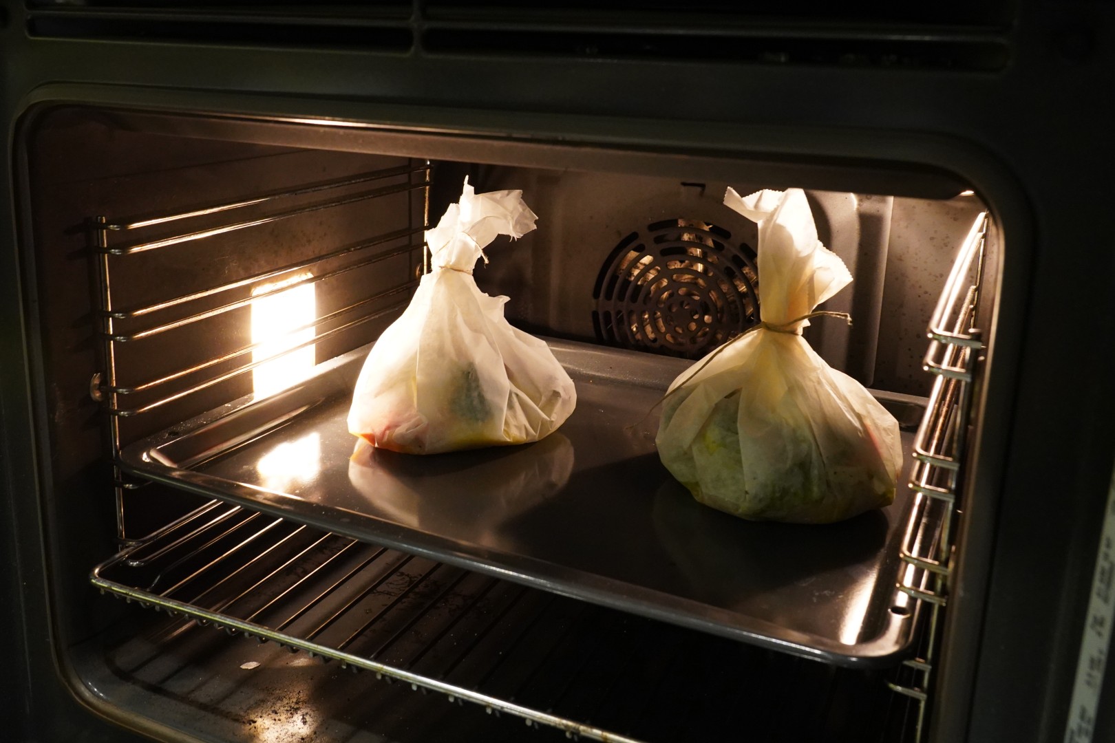 - U zdjelu u pećnici stavimo još jedan pekarski papir i na njega stavimo našu blagdansku vrećicu.