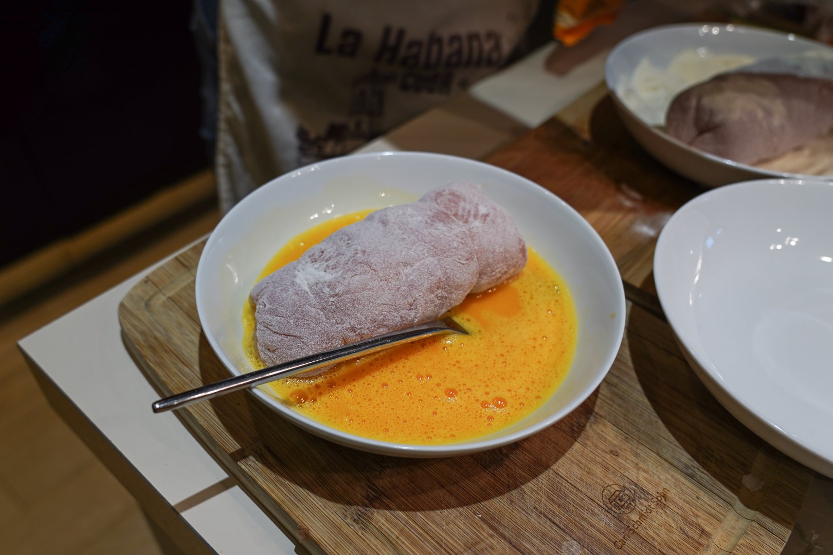 - U žumanjke dodamo ostatak šećera. Ručno ili mikserom istučemo žumanjke dok se šećer ne rastopi. Tada polako dodamo mali dio zagrijanog mlijeka i pomiješamo kako bismo spriječili da se žumanjci zgrušaju. Na kraju sve smiješamo zajedno i vratimo na vatru.