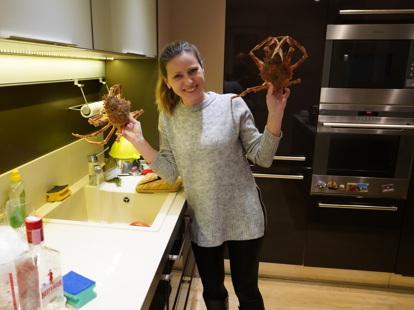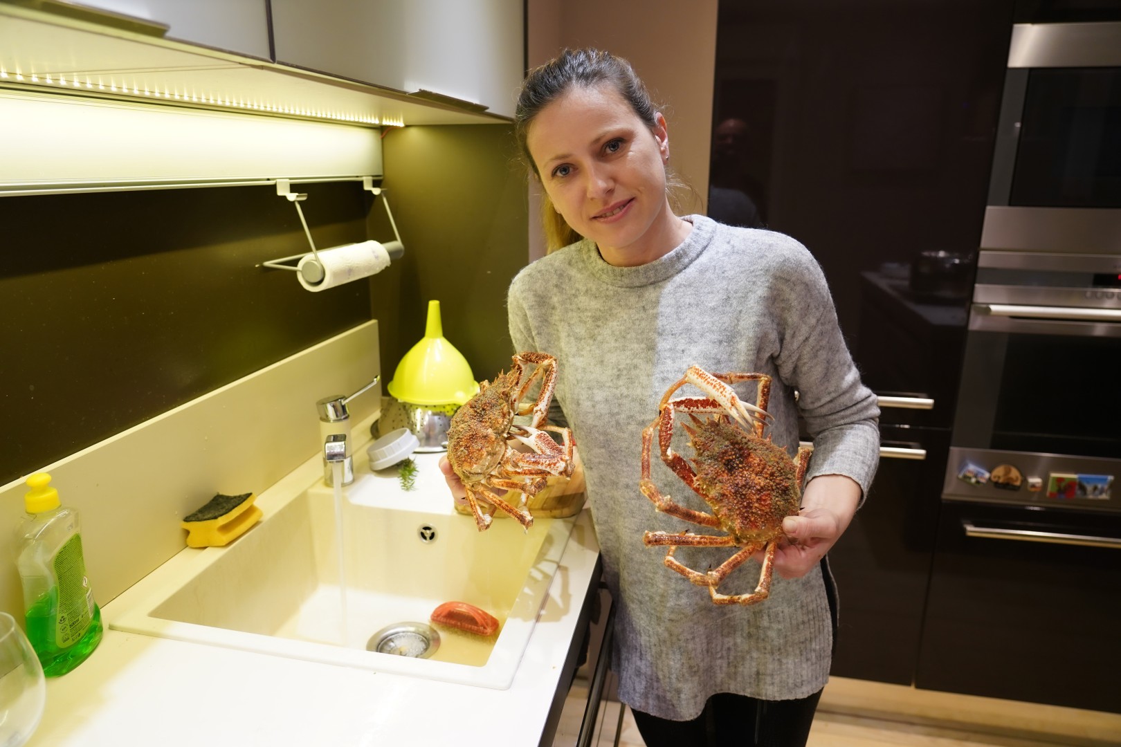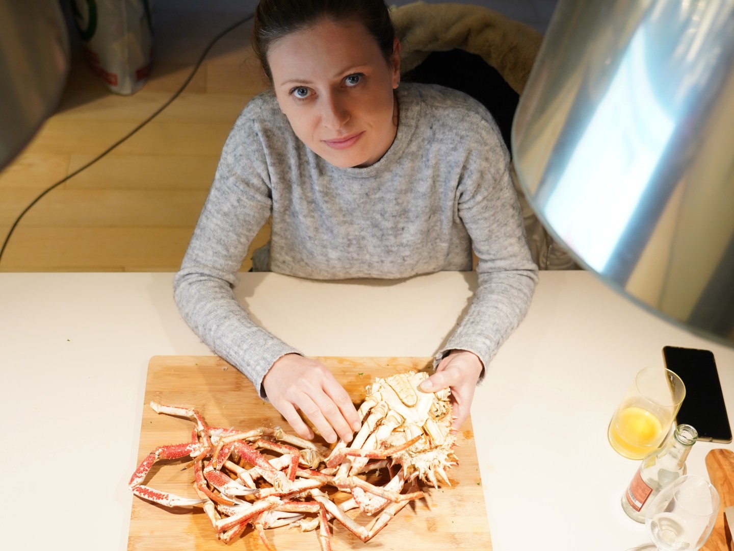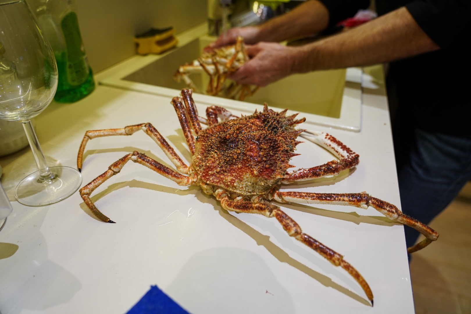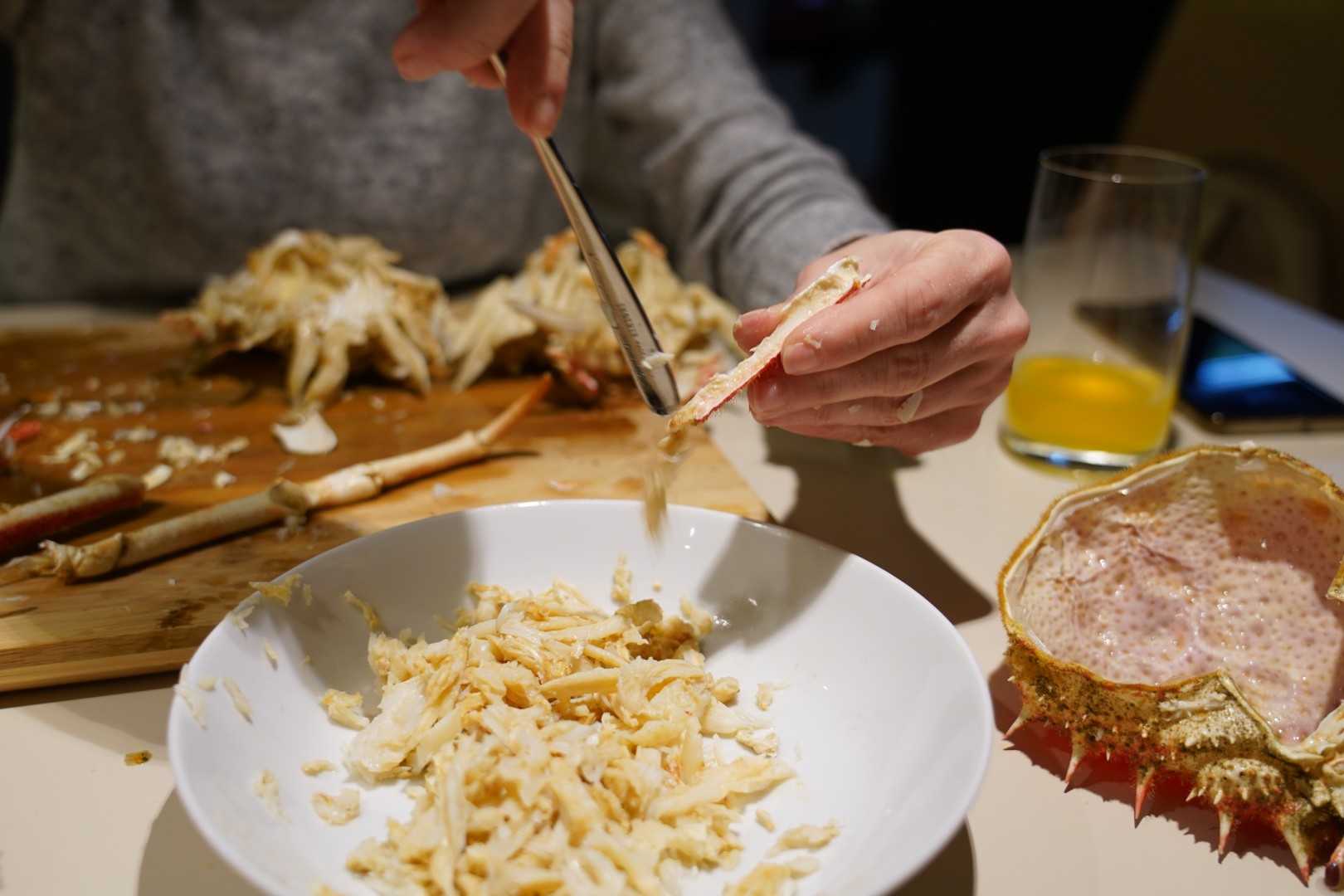 - Odvojimo noge od tijela. U nožnim člancima je većina mesa. Članke potučemo čekićem ili zdrobimo kliještima ili prerežemo jakim škarama. Meso sastružemo malom žličicom.
