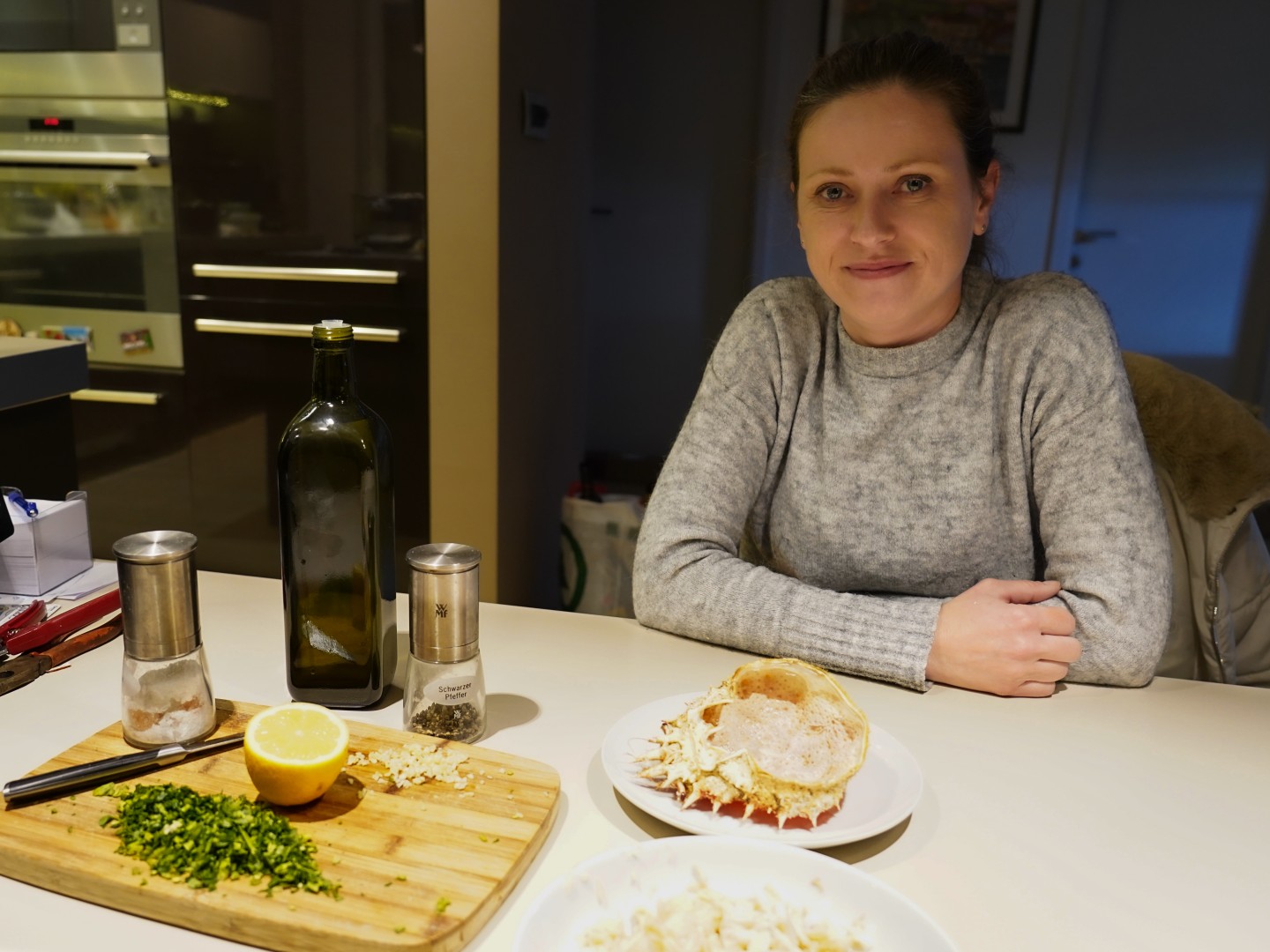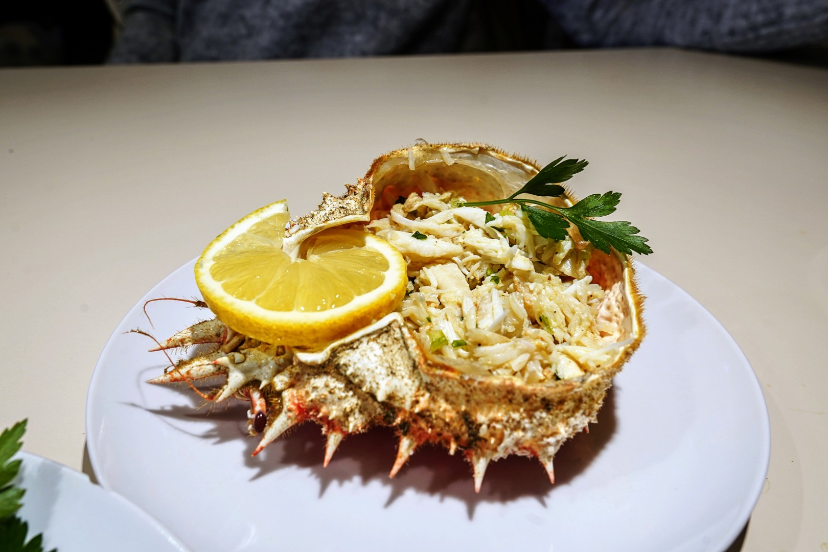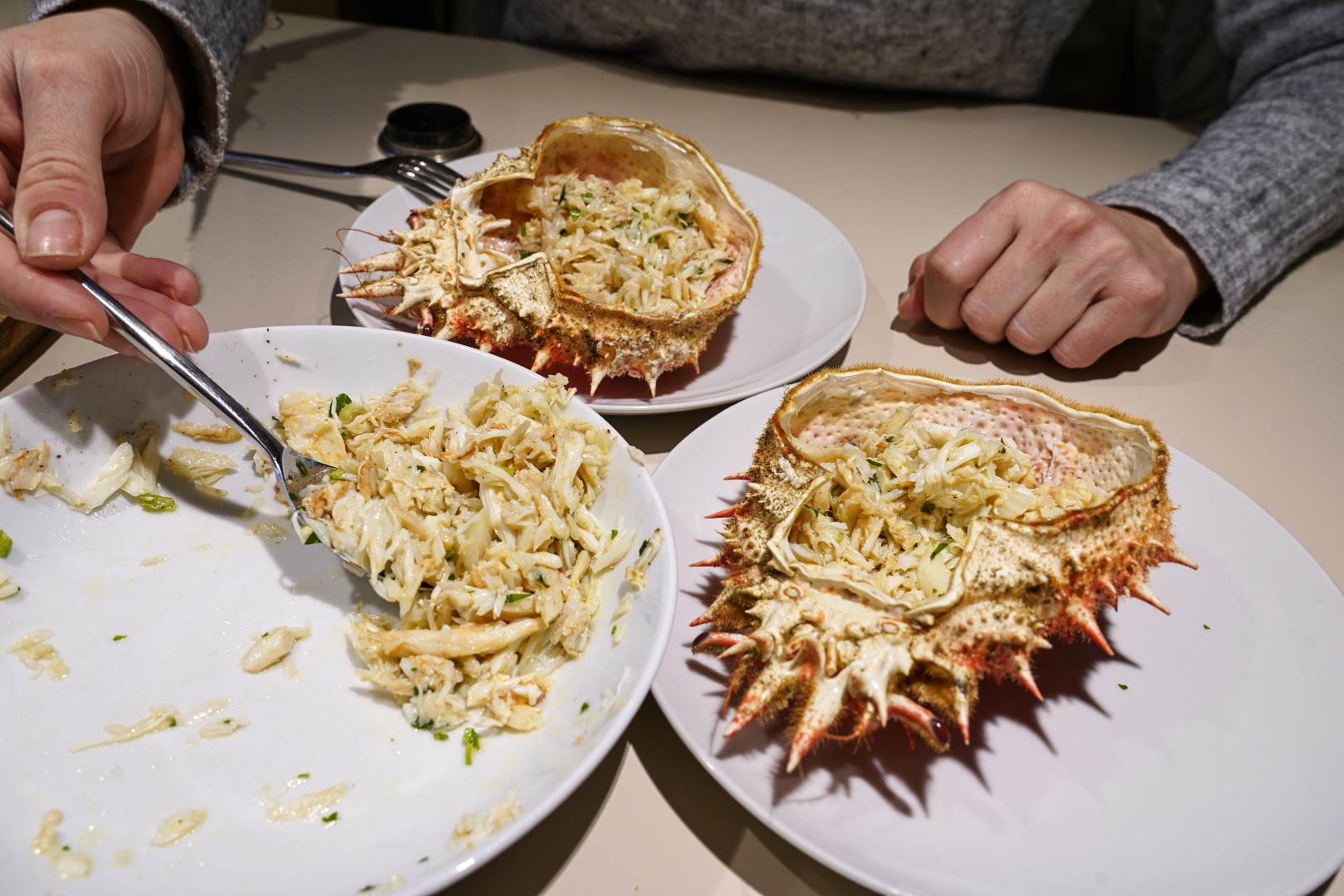 - Kada je meso izvađeno, začinimo ga s malo soli, maslinovim uljem, sitno sjeckanim peršinom i sitno sjeckanim češnjakom. Može se malo popapriti, tko voli. Na kraju pokapamo malo limunovog soka. Bitno je ne pretjerati s ničim, jer je meso predobrog okusa da bi ga se prekrilo s bilo kojim začinom.