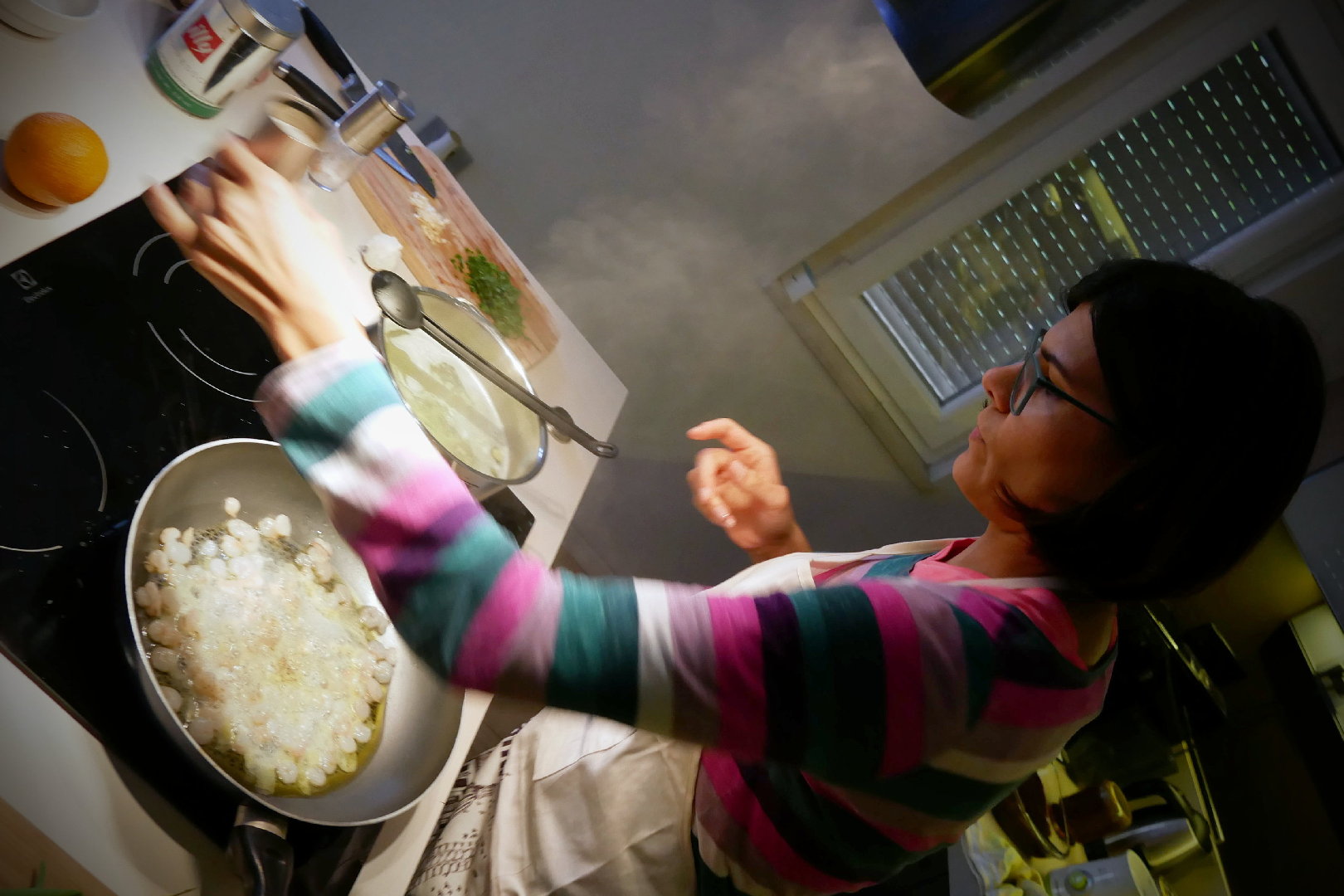 - Na zagrijano maslinovo ulje dodamo očišćene repiće kozica koje začinimo sa soli i paprom.